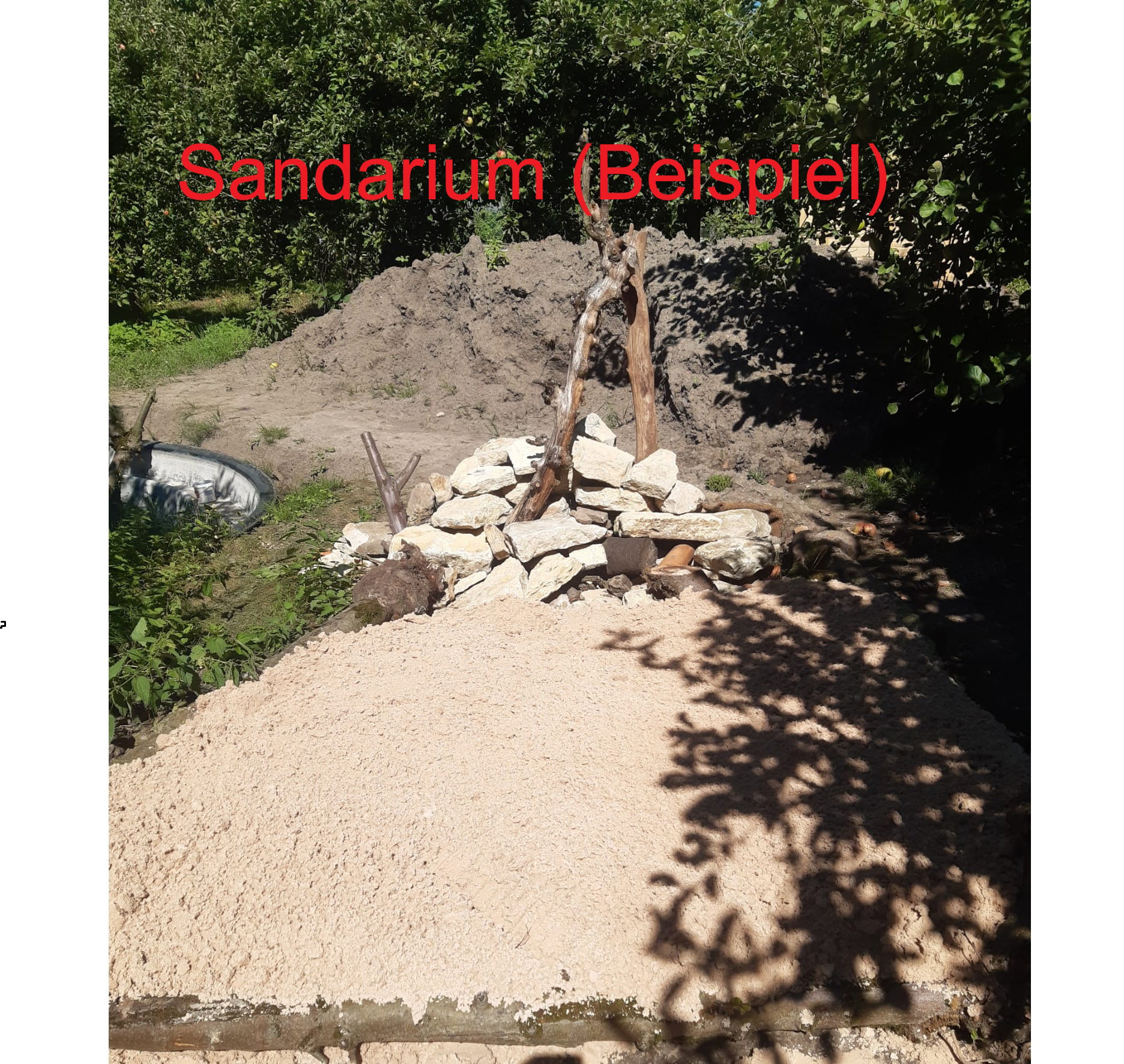 Ähnliche Kleinprojekte habe ich bereits im Bienen- und Naturgarten der Bienenfreunde Wonnegau e.V. geplant, umgesetzt und überwiegend privat finanziert. Bilder davon sind auf der Homepage des Imkervereins zu sehen. Nach dem Abschluss meiner Arbeit wurden hier leider zentrale Naturgartenkriterien nicht mehr eingehalten, weshalb ich mein Engagement dort beendet habe.