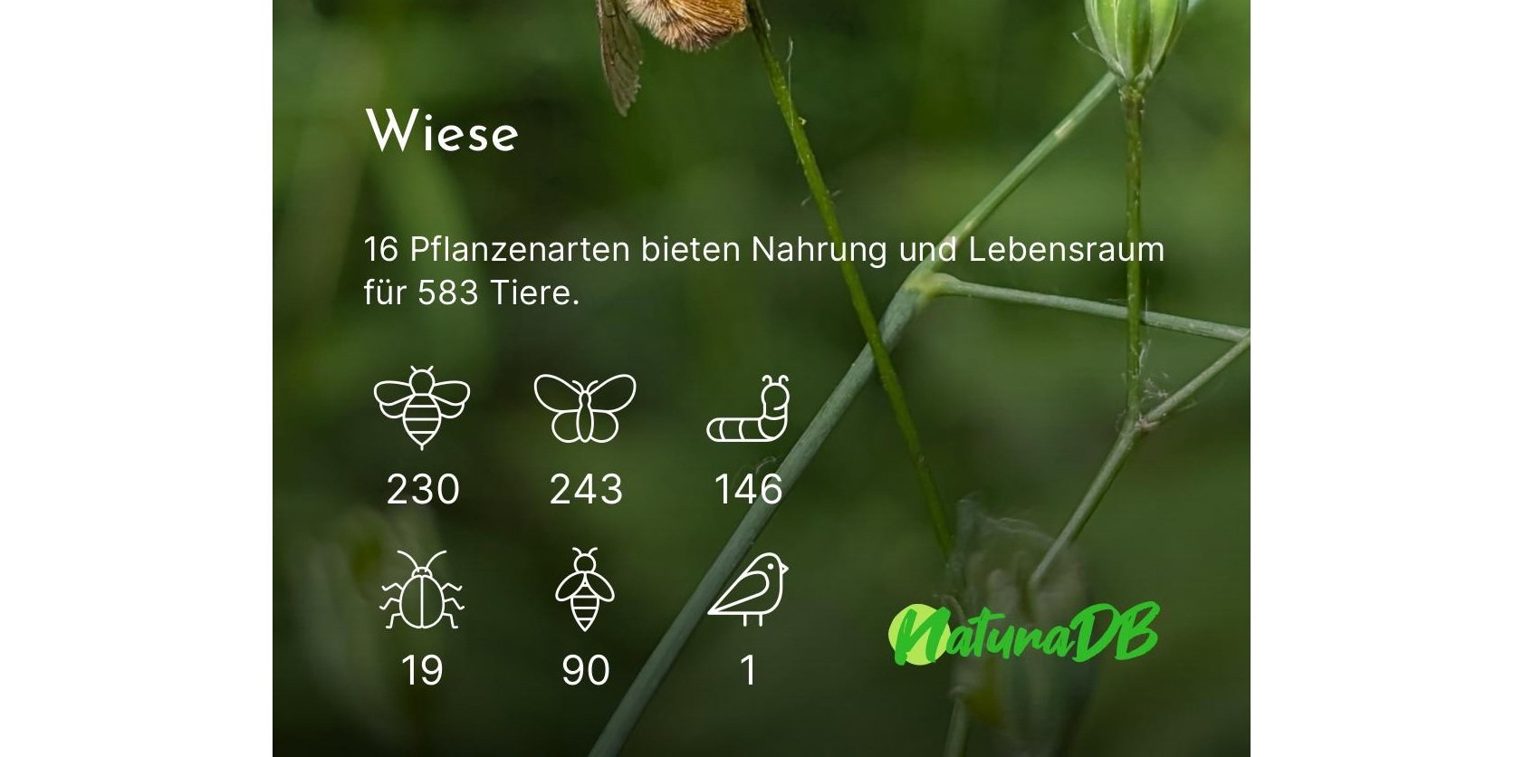Käfer sind z.B. die Lieblingsspeise der Breitflügelfledermaus und repräsentieren eine der artenreichsten Insektengruppen. Käfer sind an verschiedene Lebensräume und Ernährungsweisen angepasst. Besonders pollenfressende Käfer profitieren von mehr Nahrungsangebot in Gärten. Bevorzugte Blütenbesuche erfolgen bei pollenreichen Arten wie Goldlack oder Kerbel. Geeignete Käferpflanzen in Gärten sind beispielsweise: Wiesen-Flockenblume, Blutweiderich, Haselnuss, Weißdorn, Rotklee, Wolfsmilch, Johanniskraut.
